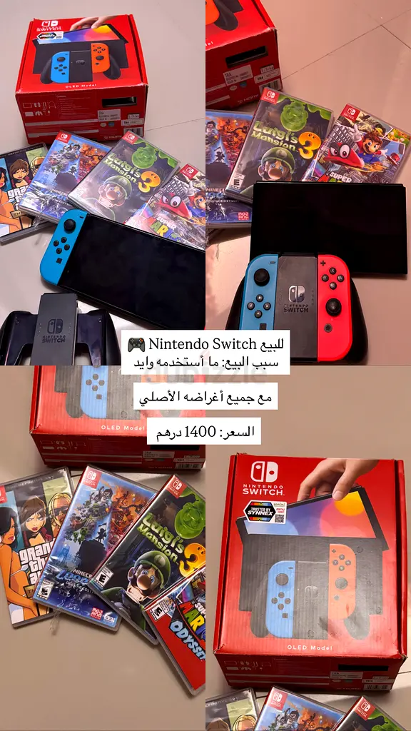 I'm selling my Nintendo Switch which comes with its original accessories and several great games. This unit is in excellent condition and has seen light usage, making it feel brand new. It's perfect for gaming enthusiasts. Included in the package are the original controllers and a selection of games that offer hours of fun.